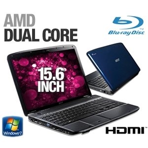 Enjoy extreme mobile performance with the Acer Aspire AS5542-5416 Notebook featuring a vivid 15.6" high-def widescreen display, AMD Turion II Dual-Core performance, plenty of storage space, media extras and Windows 7 Home Premium allowing your to get creative and accomplish more everyday. Email friends, explore the Internet, create a music library, video chat via webcam, watch movies and more on-the-go. 15.6 HD Widescreen CineCrystal LCD Display (1366x768), 16 - 9 aspect ratio ATI Radeon HD 4200 Graphics with up to 1919MB of HyperMemory (256MB dedicated and 1663 shared system memory) Blu-ray Disc / SuperMulti DVD+-R/RW Drive with Double Layer InviLink 802.11b/g/Draft-N Wi-Fi CERTIFIED 10/100/1000 Gigabit Ethernet LAN (RJ-45 Port) 56K ITU V.92 Fax/Modem (RJ-11) Multi-in-1 Digital Media Card Reader SD, MMC, MS, MS PRO, xD-Picture Card High-Definition Audio Support and 3nd Generation Dolby Home Theater Enhancement Two Built-in Stereo Speakers and Built-in Microphone Multi-Gesture Touchpad (Circular-motion scrolling, pinch-action zoom, page flip) Webcam Ports - 4 x USB 2.0, Headphone/Speaker/Line-Out Jack, Microphone-in Jack, VGA, HDMI, RJ-45, RJ-11 Approximate Unit Dimensions - 15.1 (W) x 9.9 (D) x 1.03/1.5 (H) Approximate Unit Weight - 6.16 Pounds Read more...